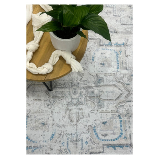 Magnolia Sands - Grey & Blue Vintage Persian Distressed Washable Rug