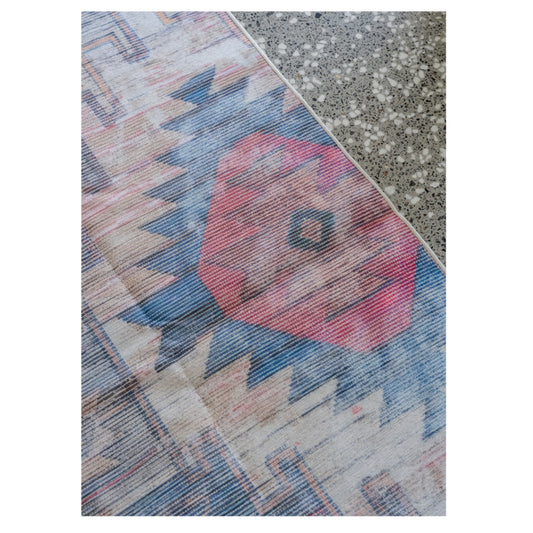 Indigo Autumn - Berry & Navy Distressed Washable Rug CLEARANCE