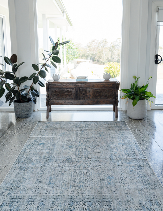 Mystic Wanderer - Taupe & Blue Vintage Persian Distressed Washable Rug CLEARANCE