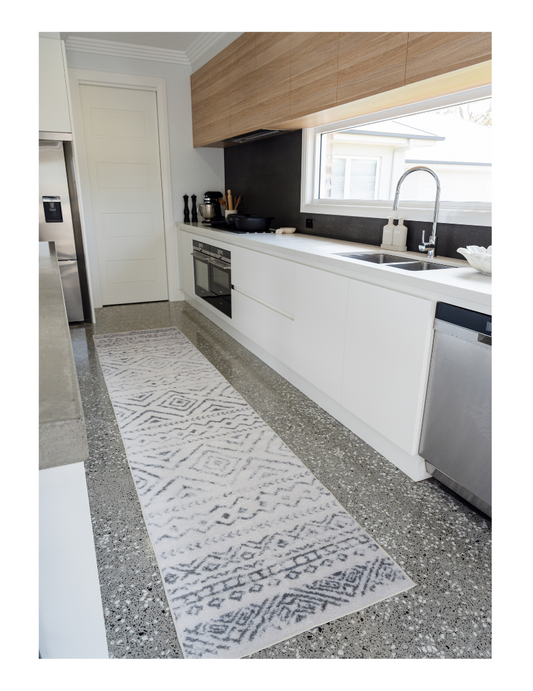 Safari - Charcoal & Ivory Tribal Washable Runner Rug CLEARANCE