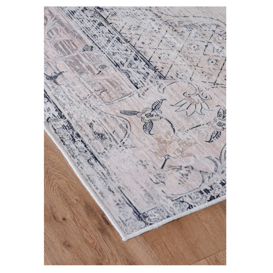 Tangier - Neutral Moroccan Boho Distressed Washable Rug CLEARANCE