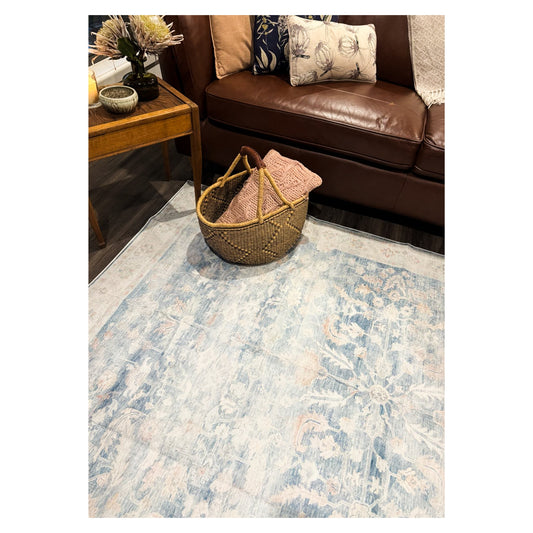 Seraphina - Floral Taupe & Navy Distressed Washable Rug CLEARANCE