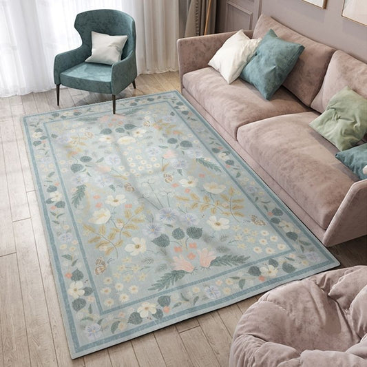 Eden - Baby Blue Floral Vintage Distressed Washable Rug