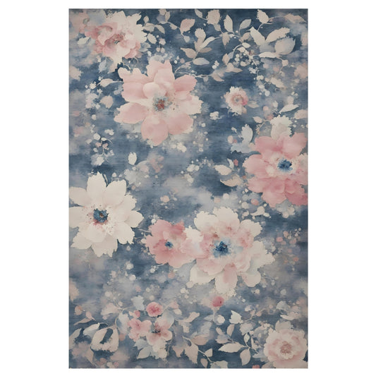 Florence - Denim Blue, Pink & Ivory floral water colour rug.