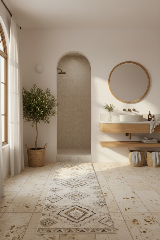 Tangier - Neutral Moroccan Boho Distressed Washable Runner Rug