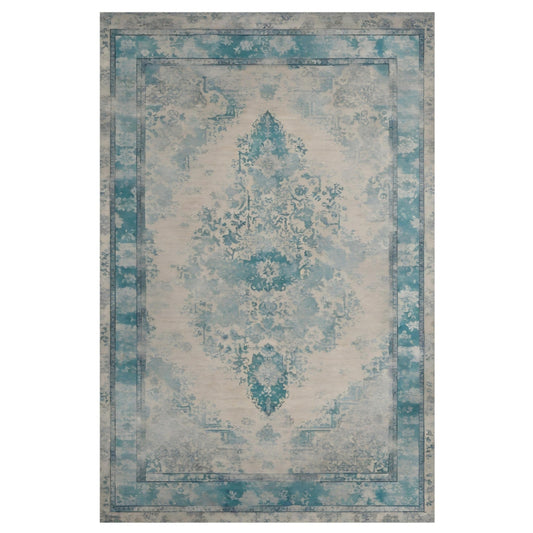 Jasmine - Ivory & Teal Vintage Distressed Washable Rug