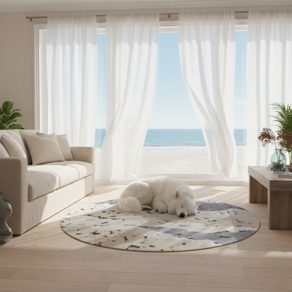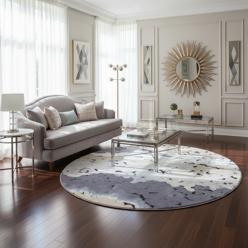 The Murrang, part of Danielle Mate's Exclusive Artists collection, adds an Indigenous charm to any modern home. This versatile art piece has been reimagined as a washable round rug, perfect for casual and stylish living spaces.