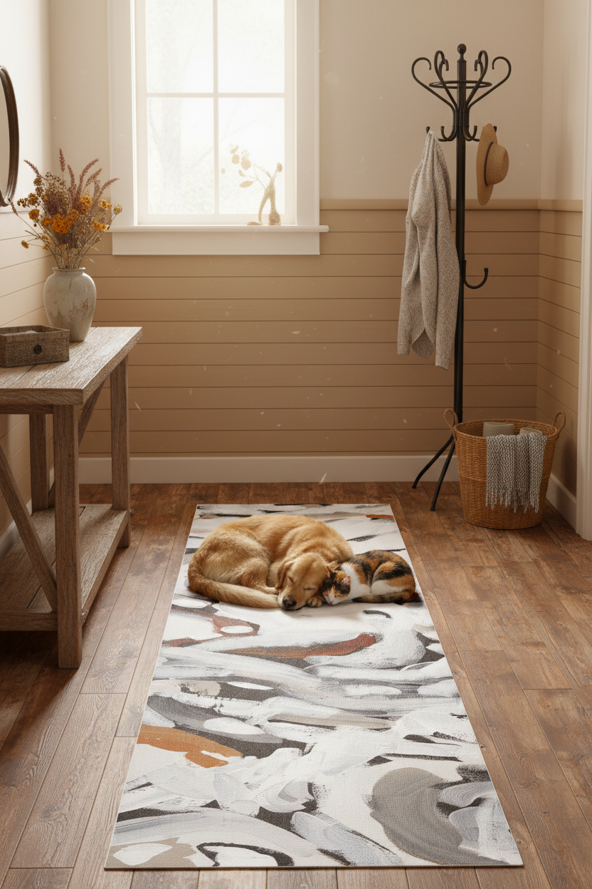The combination of Black & White with a Neutral hue on the Murul, part of Danielle Mate's Exclusive Artists collection, adds an Indigenous charm to any modern home. This versatile art piece has been reimagined as a washable runner, perfect for casual and stylish living spaces. Soft and family-friendly, it's machine washable for easy maintenance, and sure to make any interior space feel inviting. Embrace this timeless piece and add a touch of class to your home.