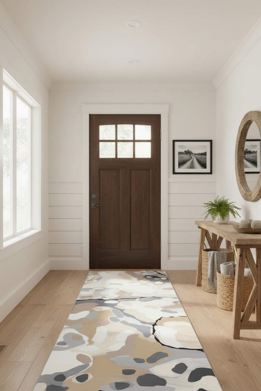 The Neutral hue of Raw Undoings, part of Danielle Mate's Exclusive Artists collection, adds an Indigenous charm to any modern home. This versatile art piece has been reimagined as a washable runner, perfect for casual and stylish living spaces. Soft and family-friendly, it's machine washable for easy maintenance, and sure to make any interior space feel inviting. Embrace this timeless piece and add a touch of class to your home.