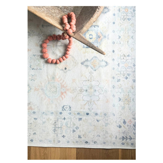 Magnolia Sands - Grey & Blue Vintage Persian Distressed Washable Rug
